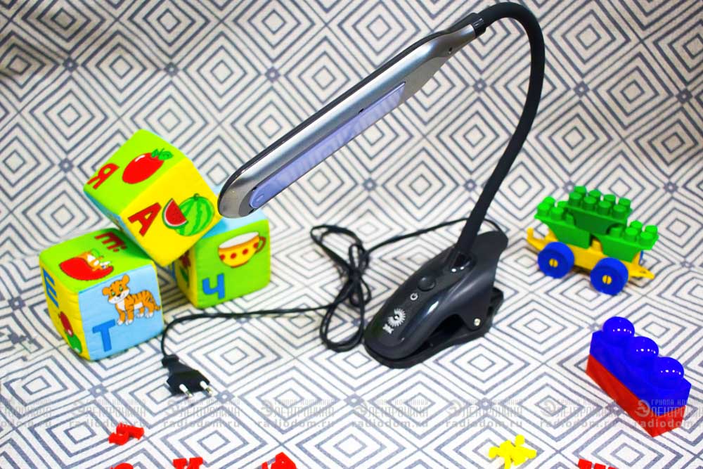 Лампа настольнаяВаши дети обожают проводить время за чтением или за играми в телефон, и вы переживаете за их зрение? Лампа прищепка выручит Вас своей мобильностью! На изголовье кровати, на шкаф, полку, стол – эта лампа осилит любую поверхность и будет именно там, где она нужна больше всего! Цветовая температура светильника 3000 К – самая комфортная для сказки на ночь!