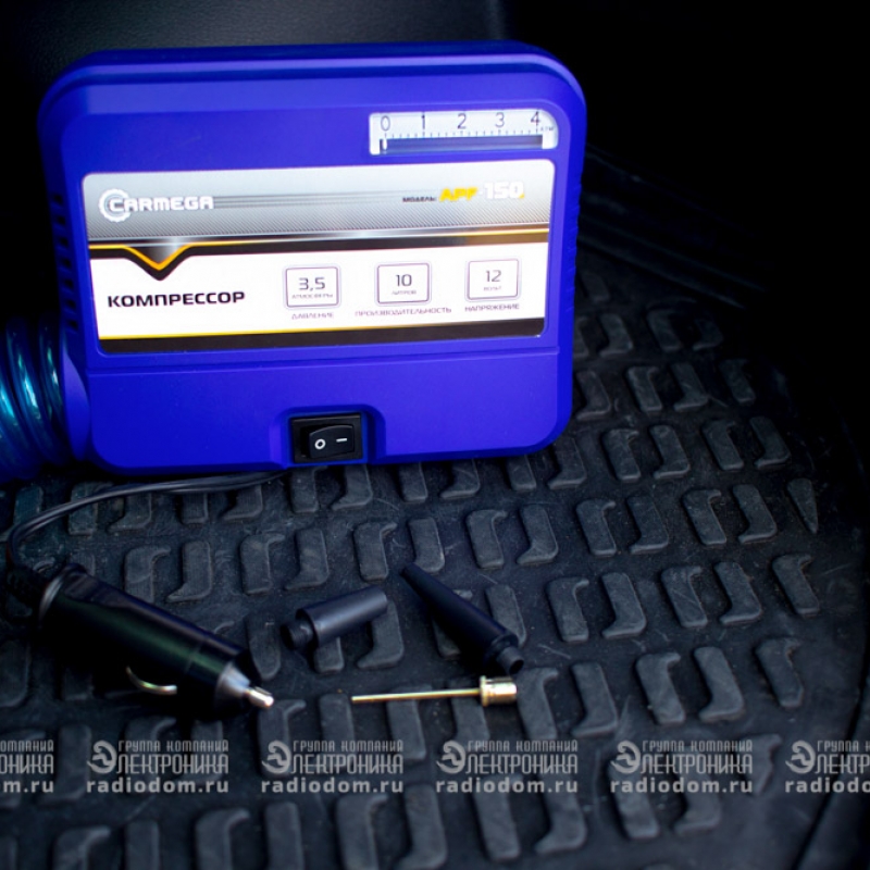 - С помощью Компрессора APF-150 Carmega Вы сможете добраться до нужного Вам места, если с Вашими колесами что-то произошло. Малый вес, компактные размеры, встроенный фонарь и цифровой манометр со светодиодной подсветкой, говорит нам об удобстве пользования данного устройства;