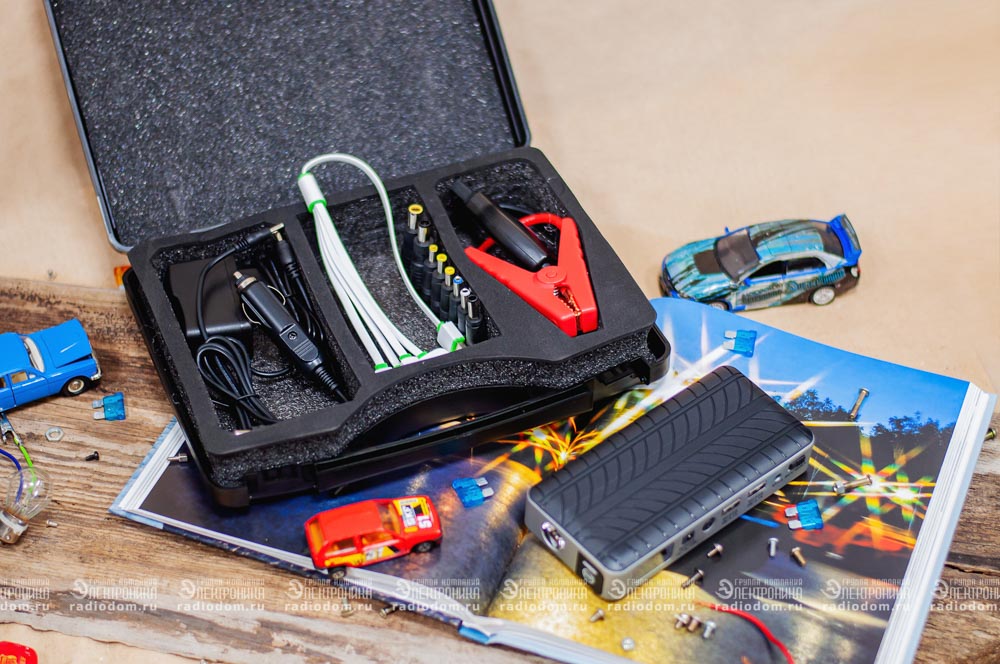 Портативный многофункциональный (пусковой) аккумулятор Powerbank + фонарь Emergency Power от Robiton. В комплект входит: